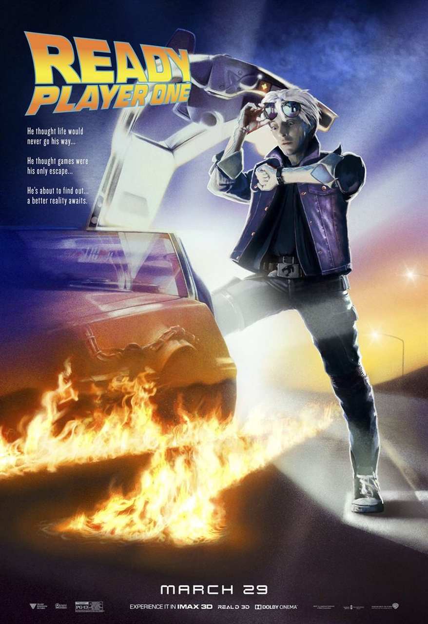 – A Warner Bros. lançou muitos pôsteres para ‘Jogador nº 1’, inspirados e repleto de easter-eggs e referências à cultura pop; Fazendo uma releitura de filmes icônicos como:(De Volta para o Futuro, Os Goonies, Blade Runner, Negócio Arriscado, Uma Noite de Aventuras, Bullitt, Clube dos Cinco, Matrix, Rambo-2, Blade Runner) e muito mais.
