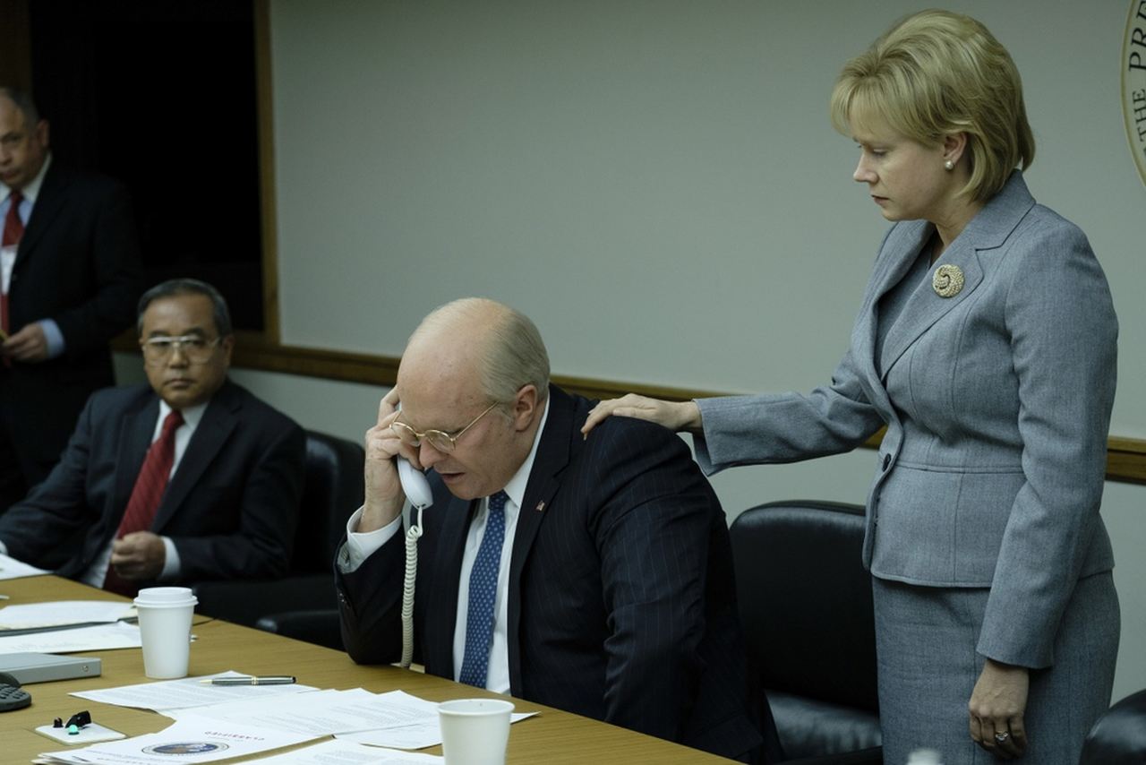 Na juventude, Dick Cheney (Christian Bale) se aproximou do Partido Republicano ao ver na política uma grande oportunidade de ascender de vida. Para tanto, se aproxima de Donald Rumsfeld (Steve Carell) e logo se torna seu assessor direto. Com a renúncia do ex-presidente Richard Nixon, os poucos republicanos que não estavam associados ao governo ganham imediata importância e, com isso, tanto Cheney quanto Rumsfeld retornam à esfera de poder do partido. Décadas depois, com a decisão de George W. Bush (Sam Rockwell) em se lançar candidato à presidência, Cheney é cortejado para assumir o posto de vice-presidente. Ele aceita, mas com uma condição: que tenha amplos poderes dentro do governo, caso a chapa formada seja eleita.